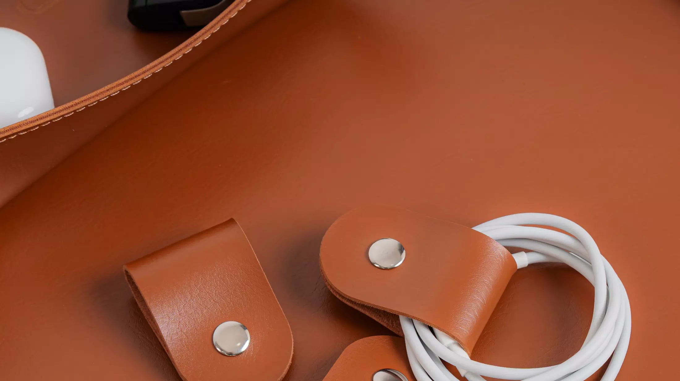 Pack com 3 unidades do organizador de cabos Ares. Feito à mão em Montana™, verso em camurça e ferragens com proteção anticorrosão.