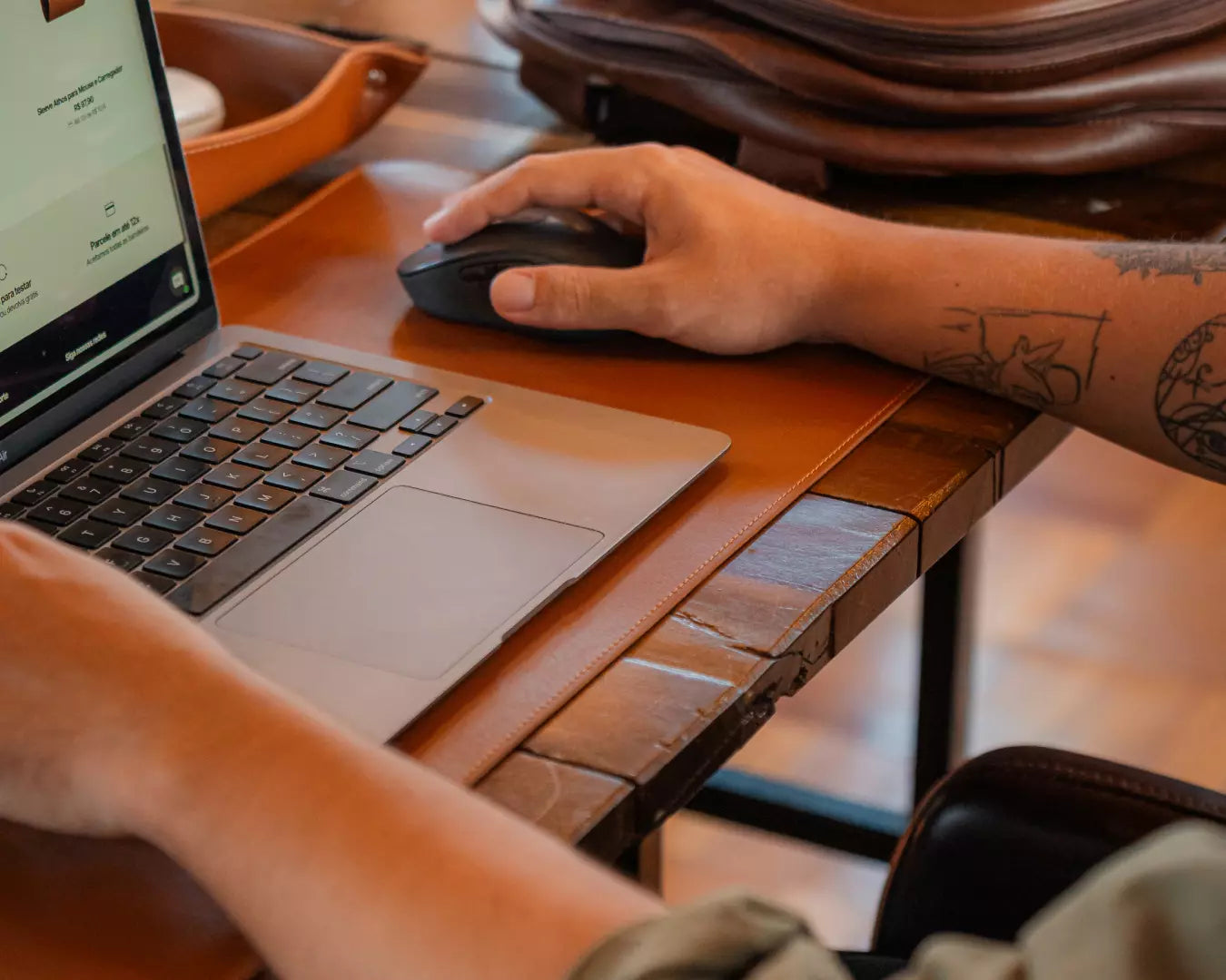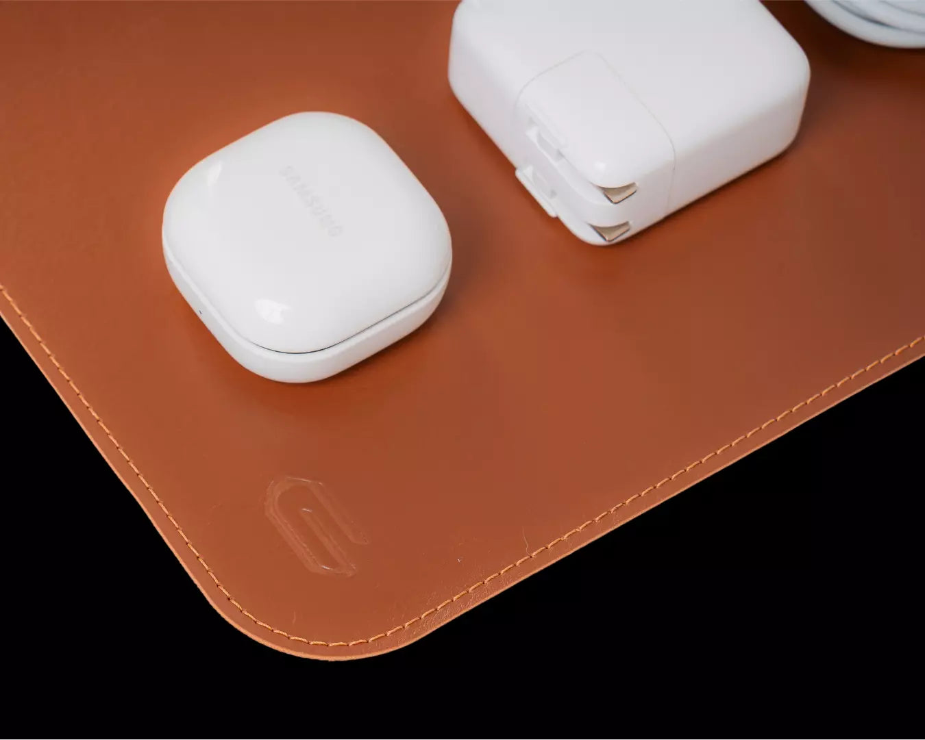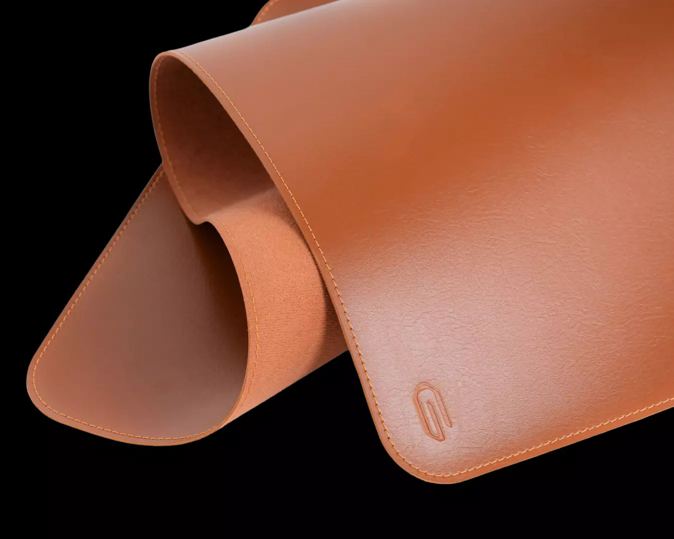 Confeccionado em Montana™ com verso em camurça, o Deskpad Cavaliere é o exemplar de uma linha criada com propósito. Da seleção da matéria-prima ao produto final.