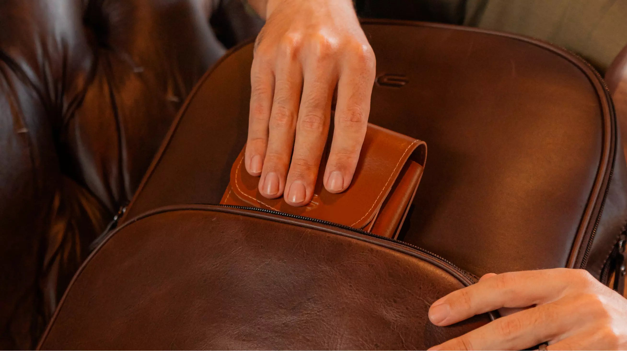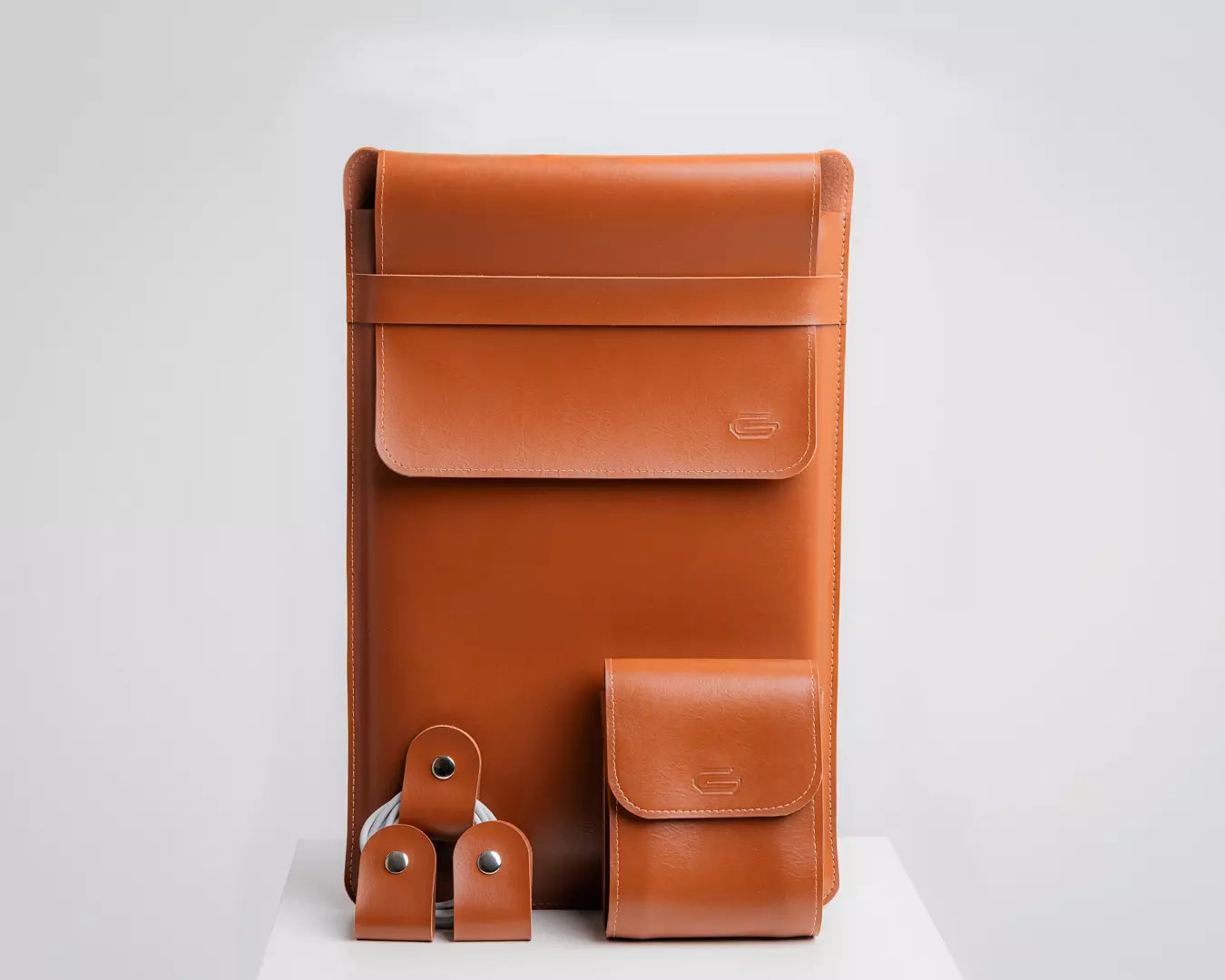 Pack com 1x Case Apollo, 1x Case Omni e 3x organizadores de cabos Ares. Peças feitas à mão em Montana™ com interior em camurça.