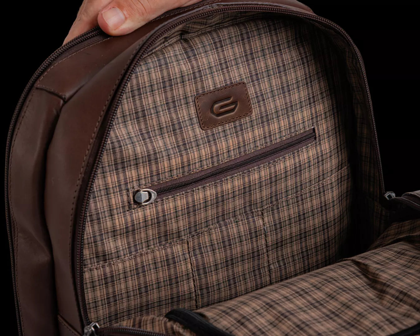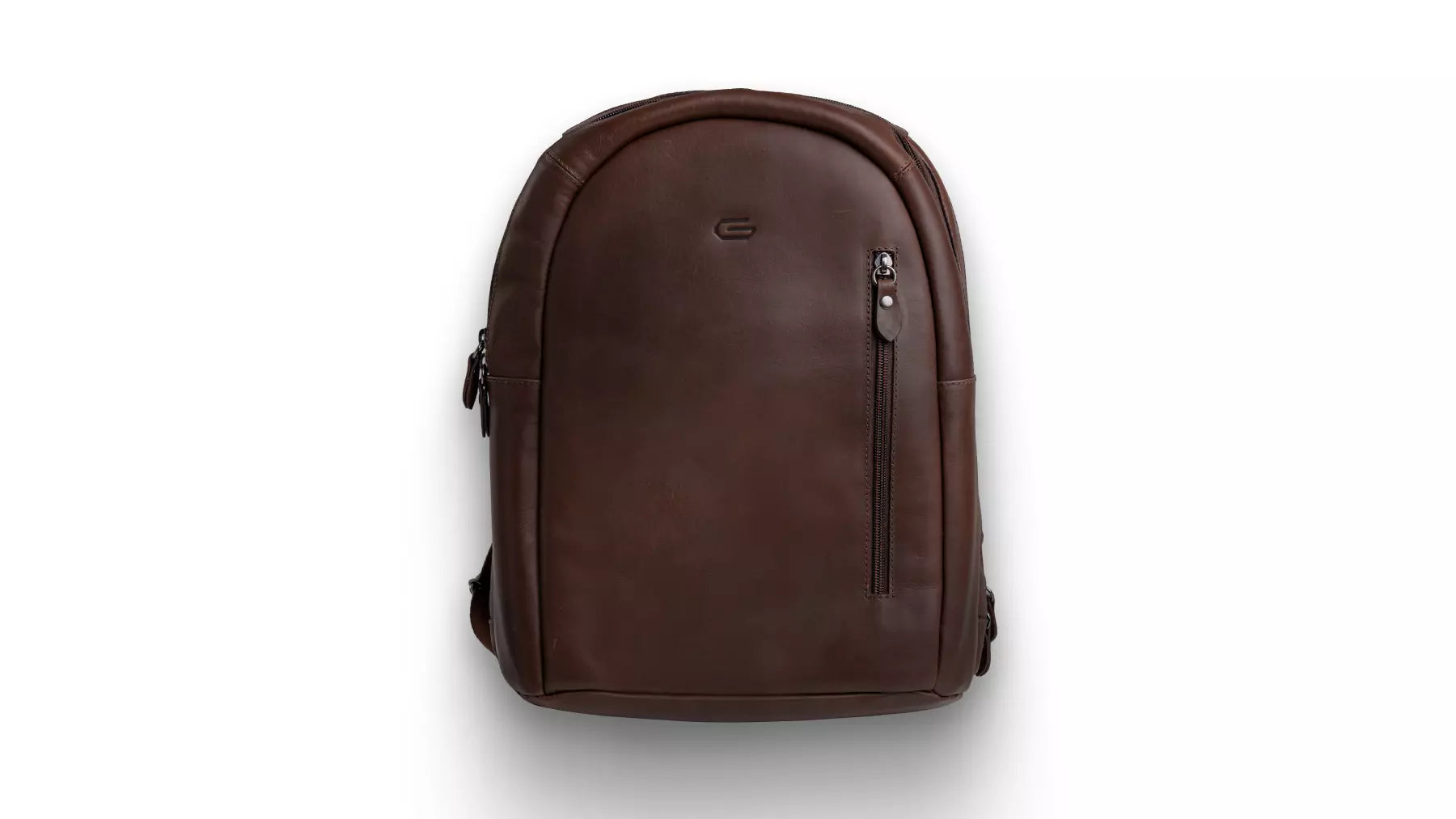 Mochila executiva Bourbon em couro bovino de grão integral, com dois bolsos principais, front pocket, compartimento para laptop e organizadores de acessórios.